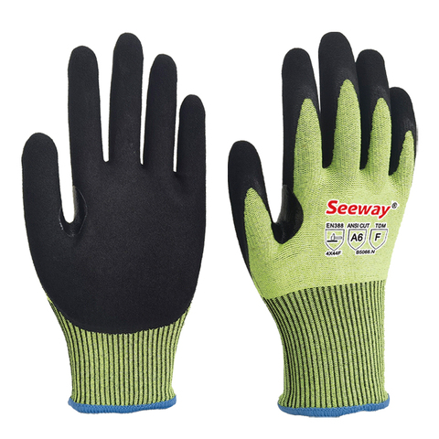 Seeway-Guantes DE TRABAJO resistentes a cortes ANSI A6 con revestimiento de nitrilo calibre 13, guantes de trabajo, resistentes al corte